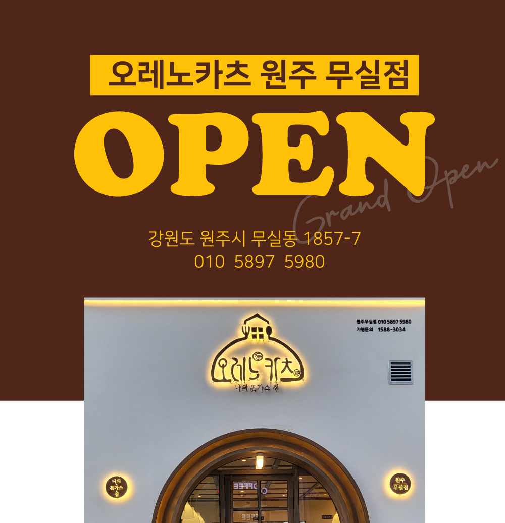 [스타데일리뉴스=황규준 기자] 돈카츠 브랜드 오레노카츠가 5월 3일 원주 무실동에 오픈한다. 오레노카츠의 강원도 첫 매장이다.